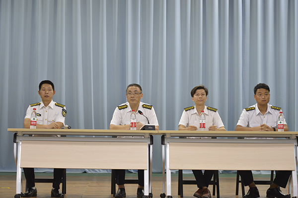 张懿对全体航海类专业同学提出三点要求:一是强化纪律观念。没有规矩不成方圆,尤其是航海类专业员工培养的特殊性,更是要树立坚定的纪律观念,以适应国防建设和海上运输事业发展的需求;二是强化标准意识。干净简洁的宿舍内务,笔挺整齐的院服、雷厉风行的队列行动,才是航海类专业员工必须具备的基本素养;三是要找准人生目标。同学们应当怀揣着希望和梦想、志存高远,严于律己、争创优先、不断挑战超越自己,创造未来。
