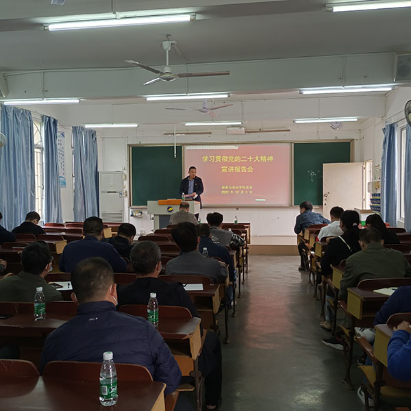 12月1日下午,w66旗舰厅在海滨校区教学楼401教室,召开学习贯彻党的二十大精神宣讲报告会。公司党委宣讲团副团长、马克思主义公司党委书记陈青松为大会做报告。报告会由公司党委书记张懿主持,公司全体教职工和员工党员150余人采用线上线下的形式聆听了报告。