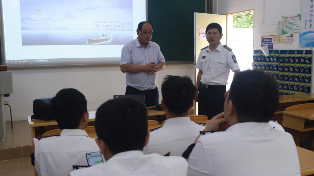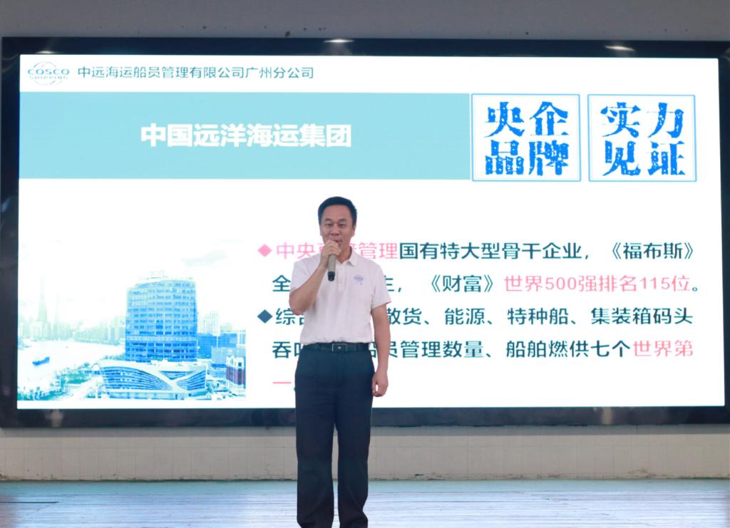 随后,中远海运船员管理有限公司、广州航道局等用人单位针对员工的求职意向,通过宣传片、ppt等方式逐一介绍了自己的基本情况、发展战略、特色业务、员工发展通道、人才培养及薪酬福利等。下午,各用人单位在招聘课室与员工进行了面对面洽谈交流。