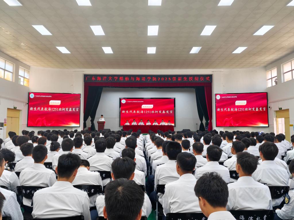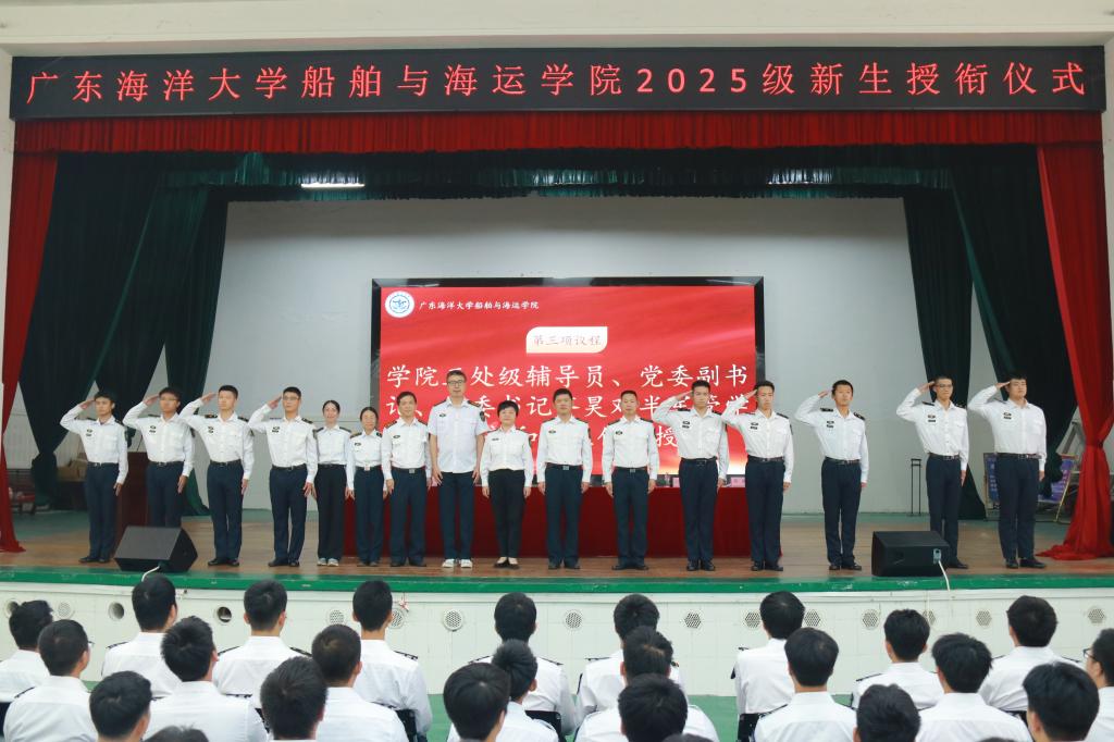 11月12日下午,w66旗舰厅在海滨校区礼堂举行了2025级新生授衔仪式。公司党委书记邓朝晖,正处级辅导员、党委副书记齐昊,轮机系主任安连彤,半军管大队长江涛,副大队长吴捍泽,辅导员黄荔、邓海漫及2025级各中队同学等300余人参加会议,活动由江涛主持。