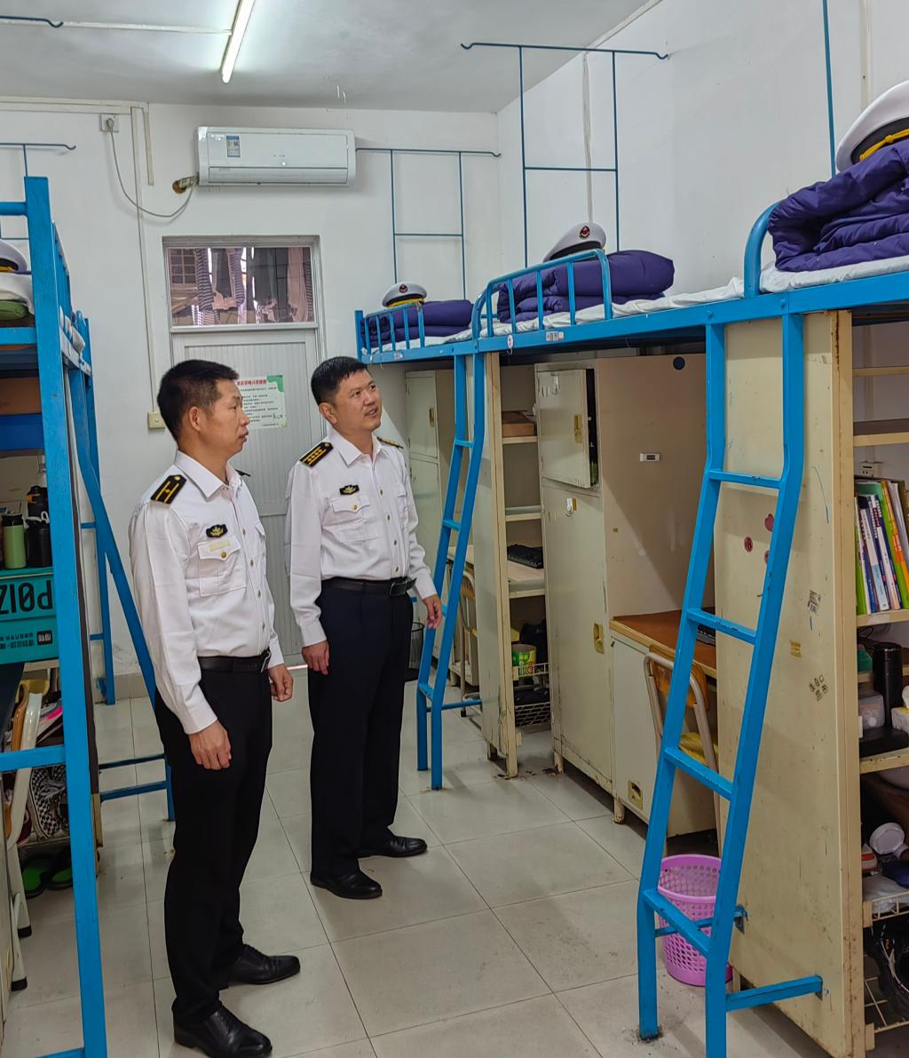 为增强航海类专业员工的作风纪律和条令条例意识,不断提升半军事化管理正规化和制度化水平。3 月 21日上午,公司组织2023级中队开展军容风纪暨内务卫生检查,公司正处级辅导员、党委副书记齐昊,公司半军管副大队长刘抒睿、江涛及各中队干部参加了活动。