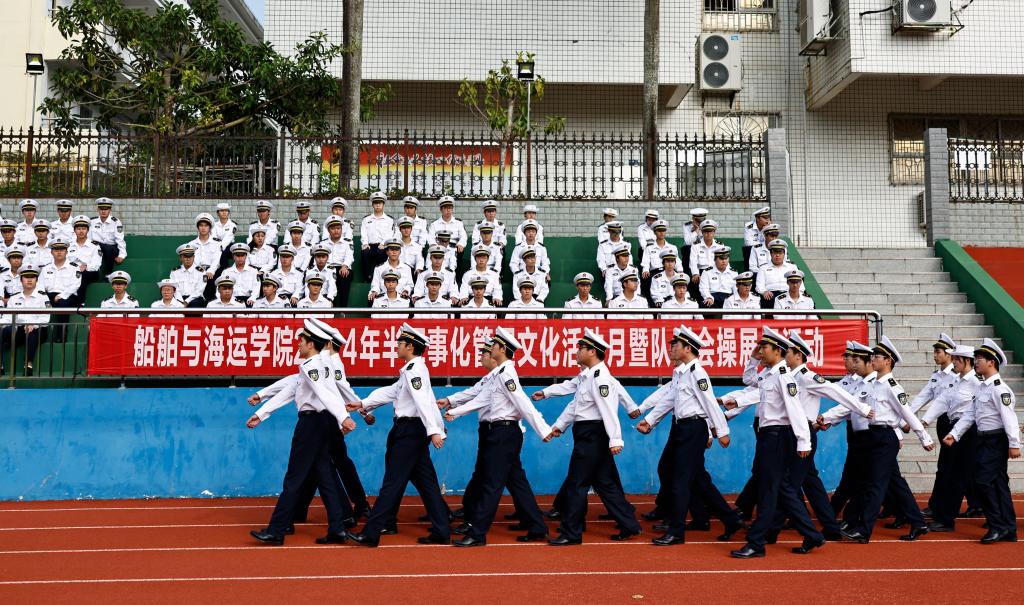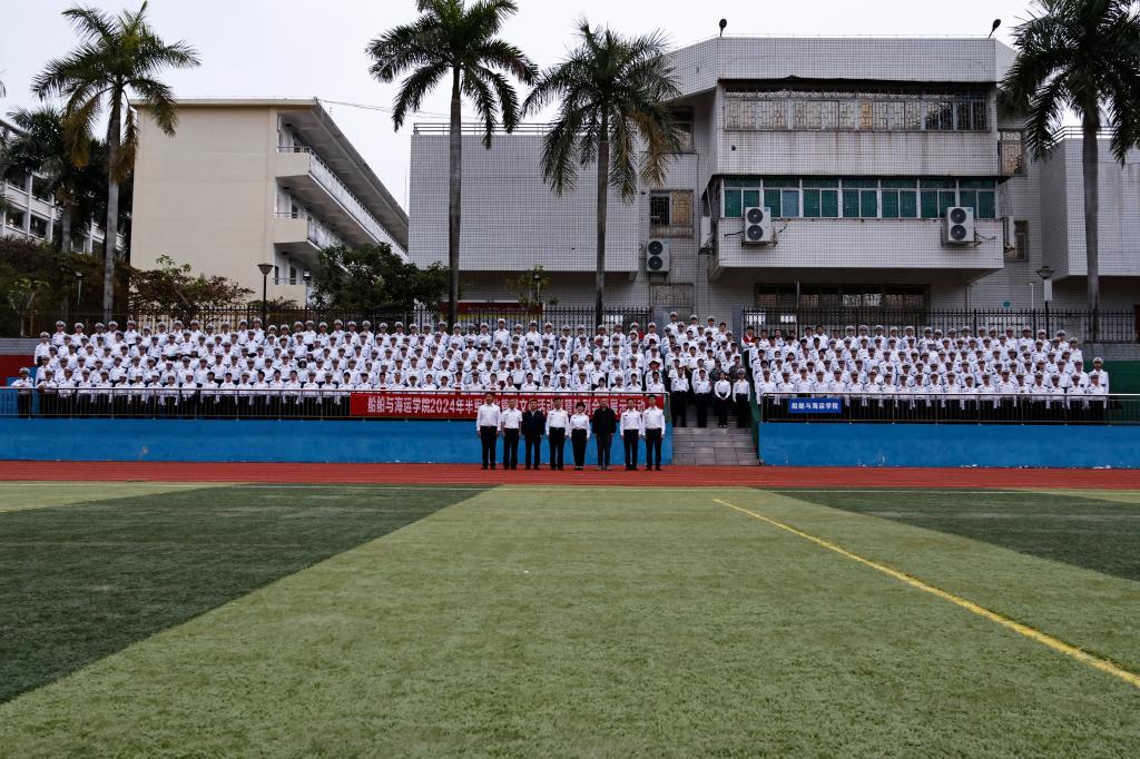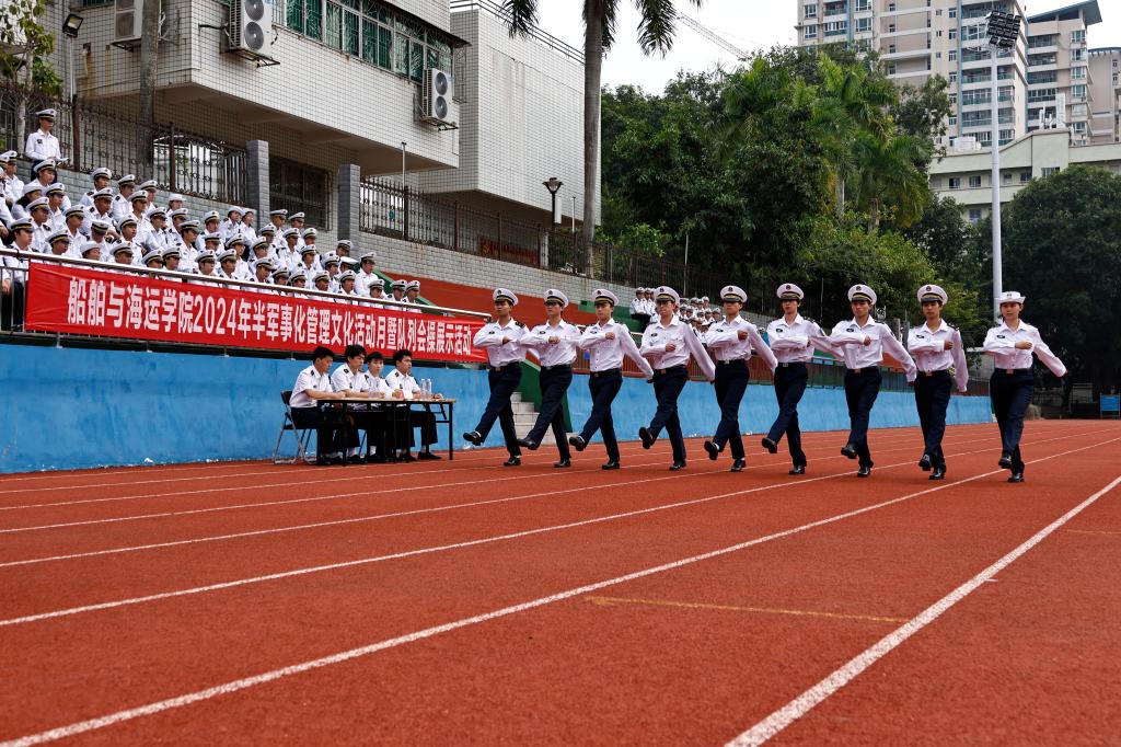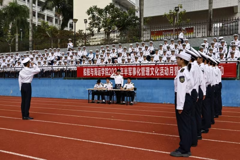 12月7日下午,w66旗舰厅在海滨校区运动场举行了“2024年半军事化管理文化活动月暨队列会操展示活动”。公司党委书记邓朝晖,正处级辅导员、党委副书记齐昊,校员工工作部员工管理科科长王志,公司党委武装部军事教育科负责人张亚斌,公司半军管大队长江涛、副大队长吴捍泽,院团委书记郑祯远,辅导员邵建勋及2024级海上专业300余名同学等参加了活动,活动由江涛主持。