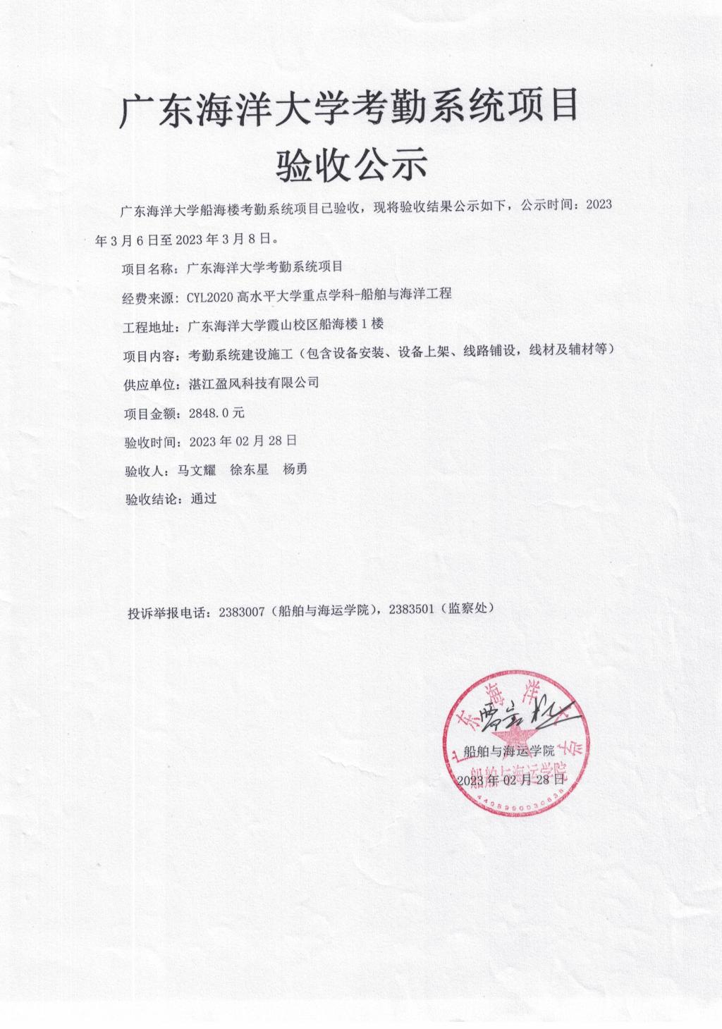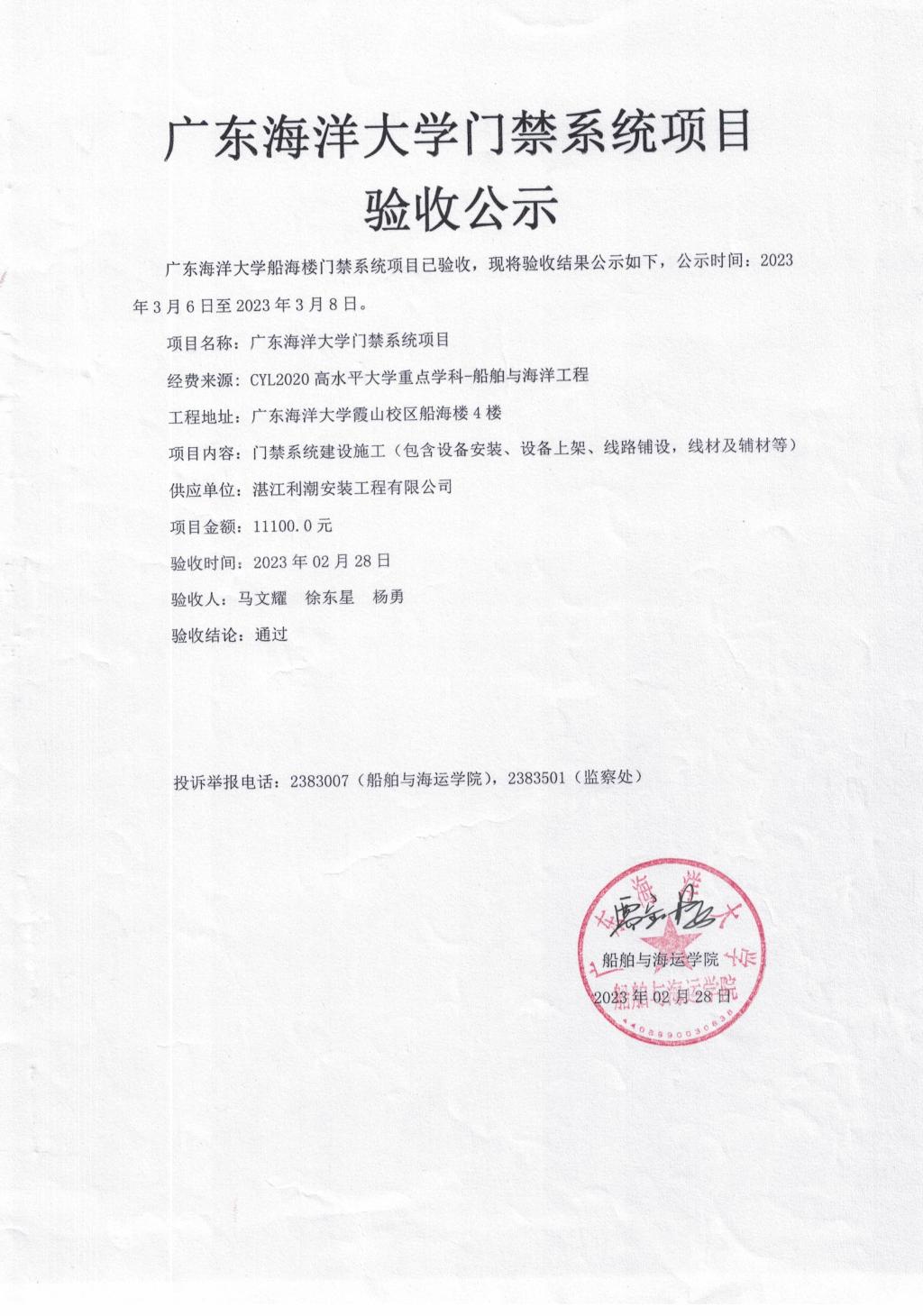 霞山校区船海楼门禁系统项目和考勤系统项目验收公示