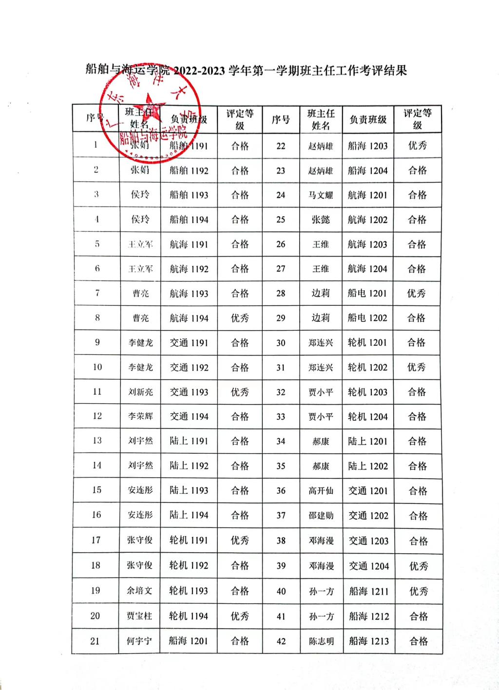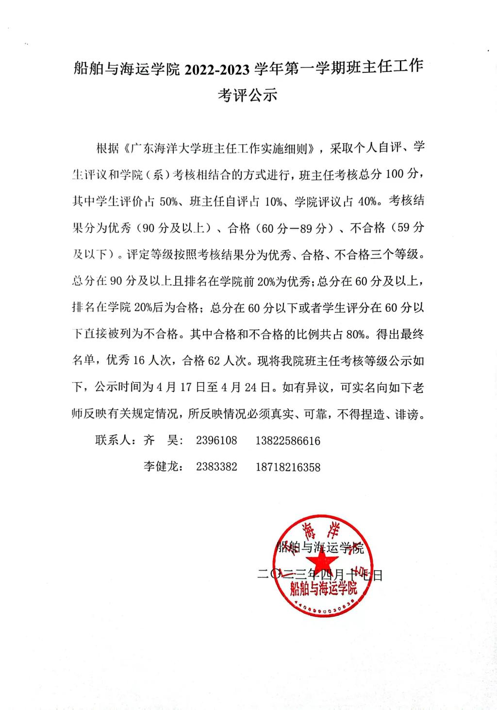 w66旗舰厅2022-2023学年第一学期班主任工作考评公示