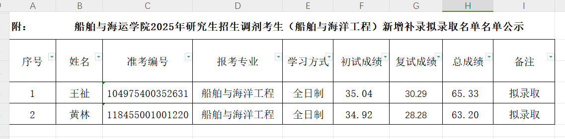 根据公司及研究生院统筹安排,现公布研究生招生调剂(船舶与海洋工程)新增补录拟录取名单。