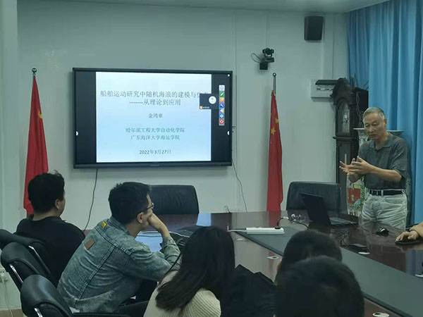 会上,金鸿章教授从随机海浪的概念入手,全面系统的对长峰波随机海浪时域内建模与仿真、长峰波随机海浪频域内建模与仿真、船舶装置在实验室联调试验中随机海浪的仿真、船舶实验水池对海洋扰动环境的物理仿真以及数值水池对海洋扰动环境的数字仿真等方面进行了介绍。