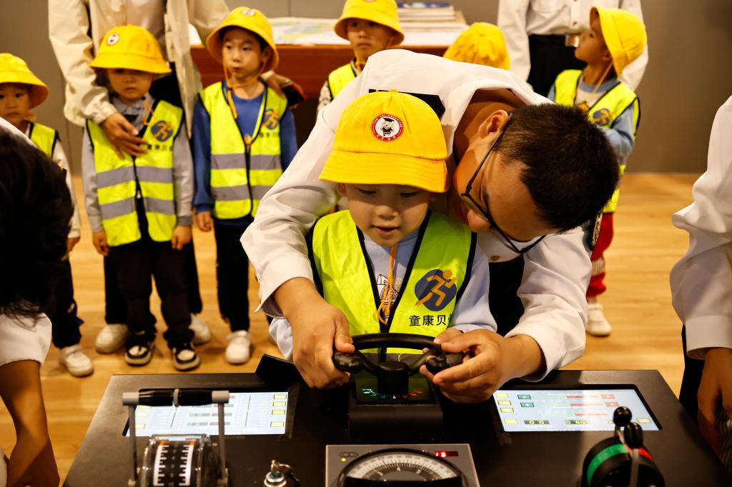 航海模拟驾驶器体验环节更是让小朋友们兴奋不已。在志愿者的带领下,小朋友们分组进入模拟驾驶舱,学习了模拟驾驶台上的仪表器械和操作方法。在志愿者的指令下,小朋友们亲自驾驶船舶,感受乘风破浪的刺激与乐趣。他们兴奋地操作着各种仪器,享受着航海带来的无限魅力。