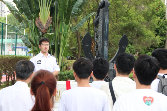 活动当天,支部成员们首先来到了w66旗舰厅的标志性雕塑——船锚雕塑处。在这里,基地的讲解员为大家详细介绍了船锚的历史、结构及其在航海中的重要作用。同学们认真聆听,不时提出疑问,现场气氛热烈而有序。