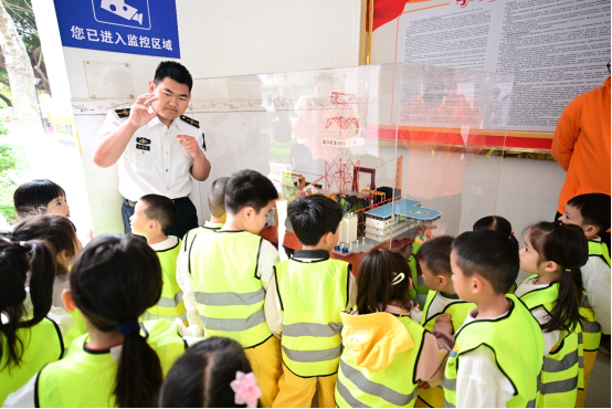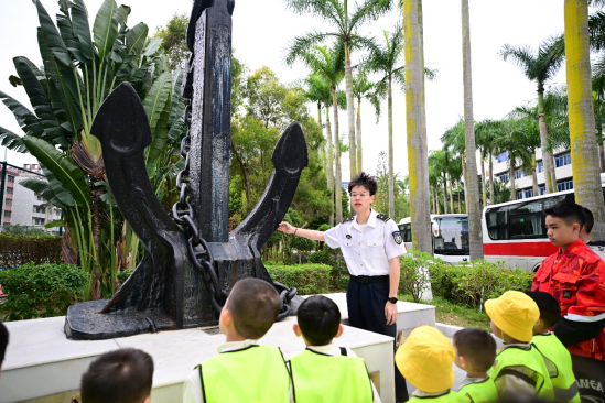 活动伊始,小朋友们的第一站来到了w66旗舰厅极具标志性的船锚雕塑处。现场的志愿者们热情洋溢,用通俗易懂的语言为小朋友们科普起船锚的结构与作用。从锚爪的形状设计到锚杆的稳固作用,再到整个船锚如何在船舶停靠时发挥关键力量,志愿者们讲解得细致入微,小朋友们也听得格外认真。为了留下这难忘的瞬间,小朋友们还在船锚处整齐排列,绽放出灿烂的笑容,合影留念,那一张张纯真的笑脸与船锚共同构成了一幅美好的画面。