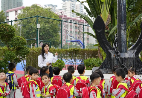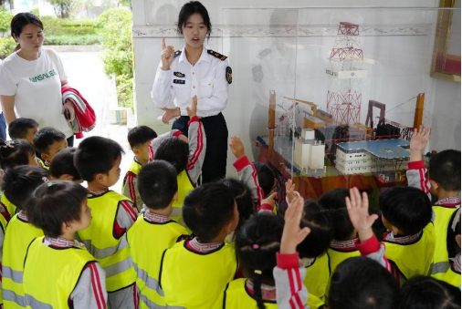 小朋友们首先来到w66旗舰厅的船锚旁,这个巨大的船锚立刻吸引了他们的目光。现场的志愿者亲切地给小朋友们讲起船锚的故事,从锚杆、锚爪等部件,用简单有趣的话语,让小朋友们理解船锚的构造。志愿者还通过提问、互动的方式,引导小朋友们思考,小朋友们纷纷踊跃举手,回答志愿者的问题,对回答的小朋友给予糖的奖励。