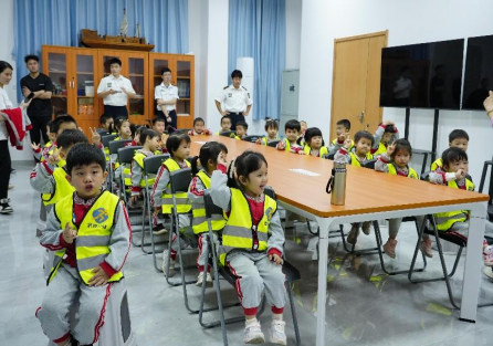 参观结束时,大家一起合影留念小朋友们都依依不舍。 他们眼中满是留恋,心底满是期待,盼着下次再来这奇妙的航海世界。在这里,每一处未知都是待解的谜题,每一次探索都是难忘的旅程。他们渴望继续扬帆起航,去追寻更多奥秘,让航海的魅力在不断探索中,深深烙印在心底。