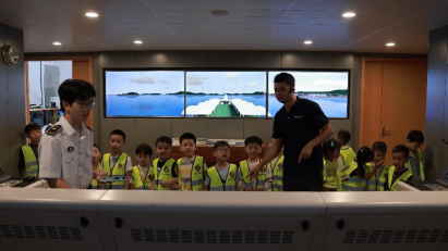 之后,小朋友们来到航海模拟器前,志愿者耐心地介绍操作台上按钮和仪表盘的功能,以及模拟航海的操作方法。小朋友们听得津津有味,迫不及待想要亲自体验。在志愿者的协助下,小朋友们坐在操作台前,好奇地摆弄着模拟器,尽情享受模拟航海的乐趣,现场气氛热烈非凡。