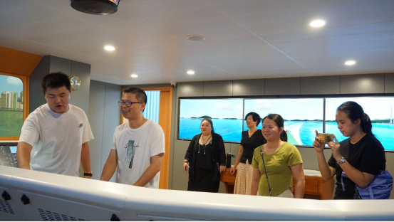 随后,调研团队一行来到航海模拟器区域。模拟器呈现出的逼真场景和精准的操作体验,让领导们仿佛身临其境,置身于真实的航海环境之中。通过模拟驾驶体验,对模拟器在航海教学与科普工作中发挥的重要作用给予了高度评价。